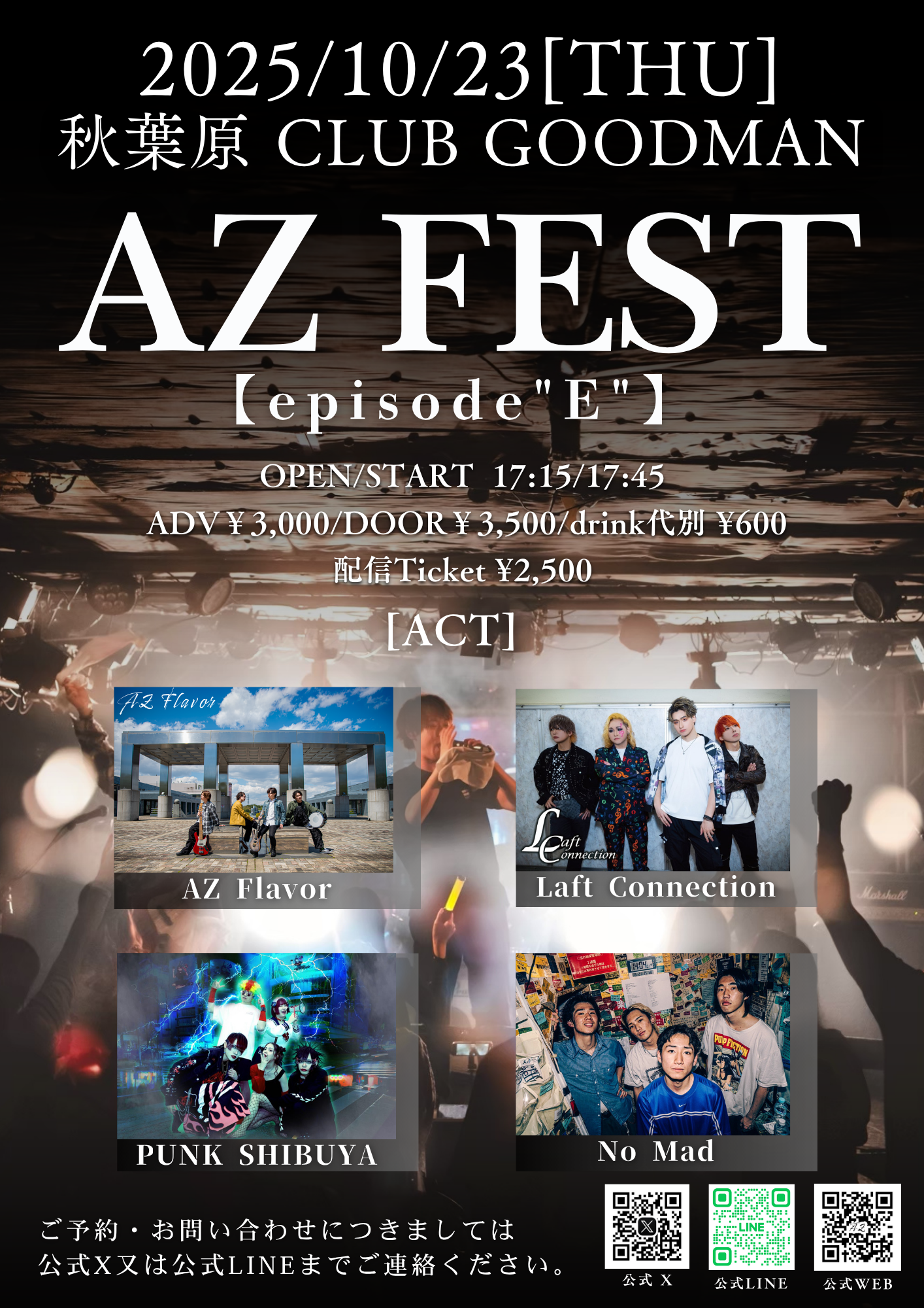 予約¥3,000 当日¥3,500 ドリンク代別¥600 配信¥2,500