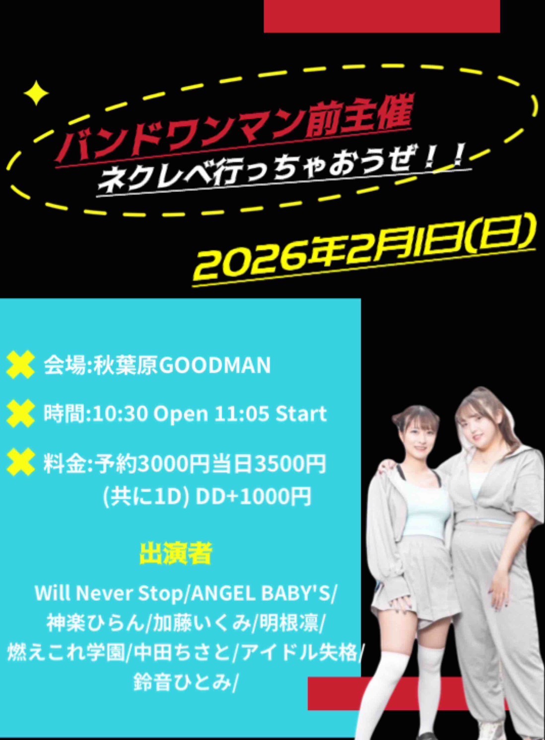 Will Never Stop初のバンドワンマンライブ 前主催になります! よろしくお願い致します!