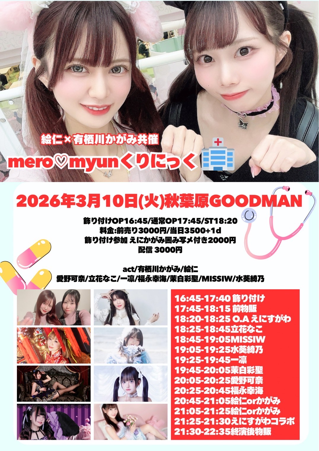 前売り3000円/当日3500+1d 飾り付け参加 えにかがみ囲み写メ付き2000円 配信 3000円1ドリンク 600円